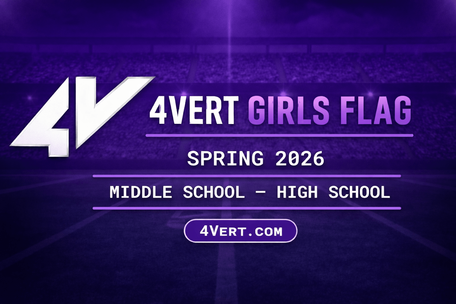 The 4 Vert girls’ flag football league uses official high school 7v7 rules to give participants an authentic experience that mirrors the competitive high school environment. Whether a high school team getting in off-season work, or 7th-8th graders looking to prepare for the next step, the league offers options for everyone.